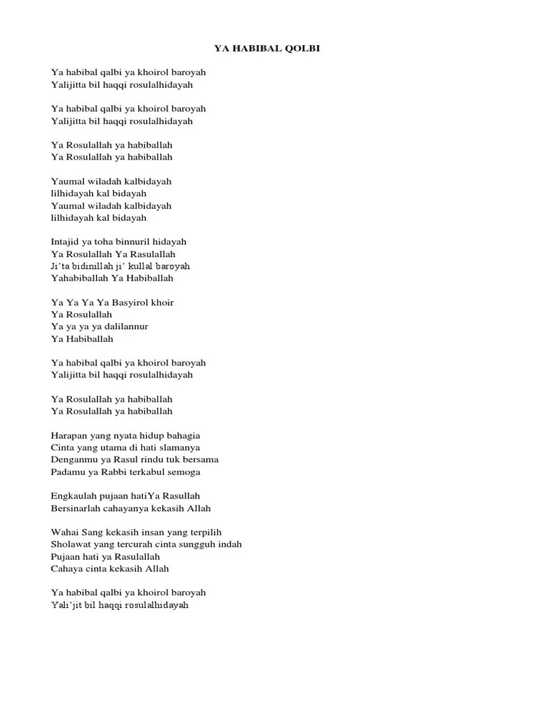Yaa habiibal qolbi ~~~~~ يَا حَبِيْبَ الْقَلْبِ. Lirik lagu sholawat ya habibal qalbi dan artinya wahai kekasih hati versi sabyan gambus. Layanan mobile dari situs entertainment terbesar indonesia, kapanlagi.com. Melalui lirik sebuah nasyid yang sering diperdengarkan, saya menyimak lafazh tersebut. Kekasih hati yang dimaksud adalah nabi muhammad saw.